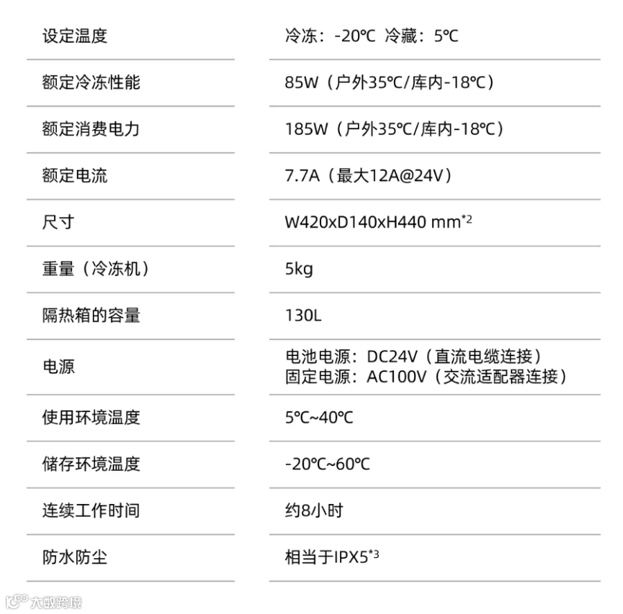 *1 D-mobico"是电装的商标。名称来源于"DENSO mobile cool",含有可以移动携带的冷冻机的寓意。