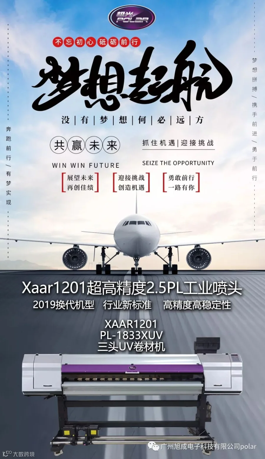 广州旭成一直致力于打印机的研发和应用。主要产品有写真机、喷绘机、数码印花机、平板UV机等,广泛应用于广告标识、数码印染、包装印刷等多个行业。其自主研发的极光品牌下的各款打印机设备在全球多个国家及多个行业取得了不凡的口碑,极光打印设备以其卓越的性能和超高的稳定性赢得了广大客户的一致认可。为广大客户提供最智能化和最现代化的完整喷印解决方案。