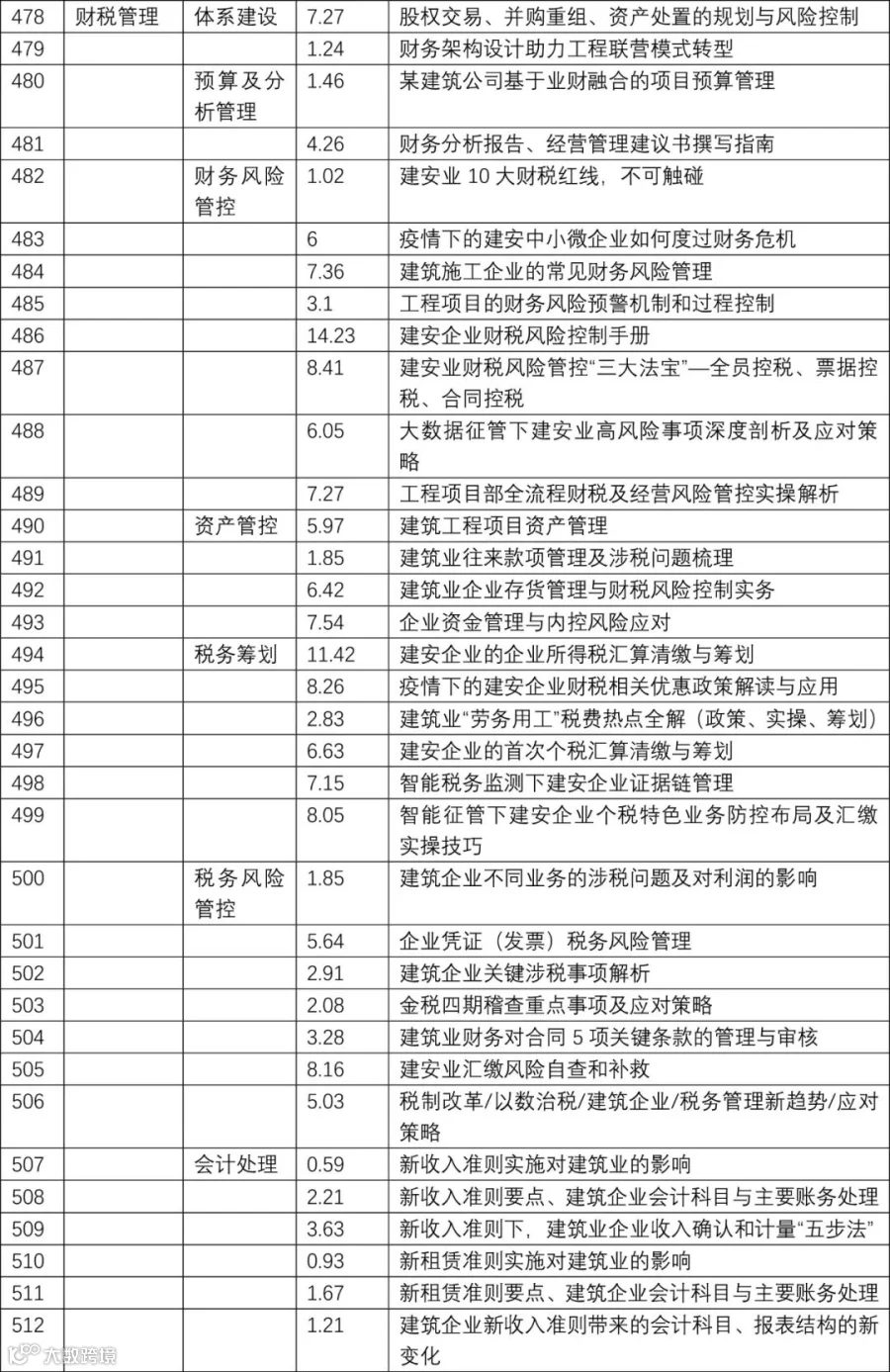 2022年 | 最新建设行业网络视频 课程主题 目录表