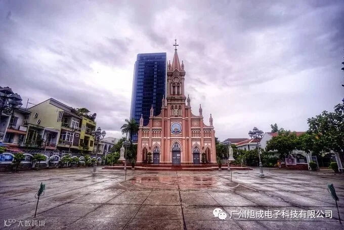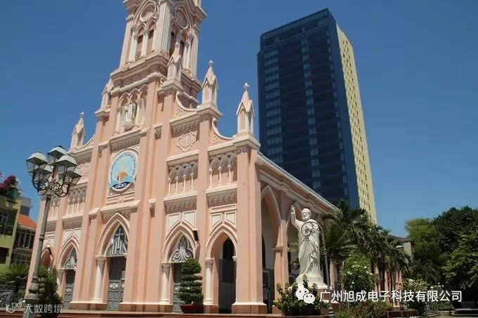 岘港市区标志性建筑,粉红色的外观,充满浪漫气息-岘港大教堂