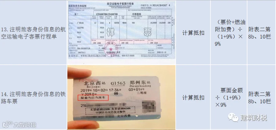 (五)取得注明旅客身份信息的铁路车票:票面金额÷(1+9%)×9%