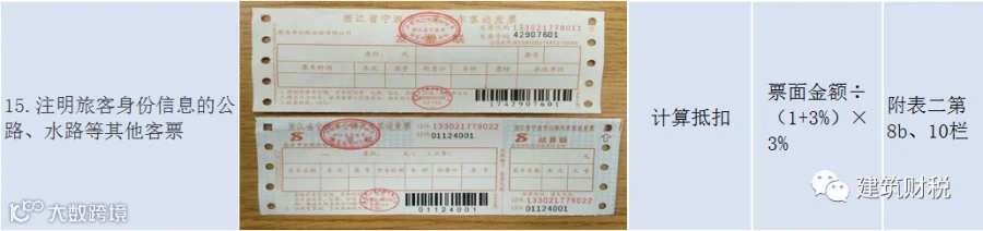 (六)取得注明旅客身份信息的公路、水路等其他客票:票面金额÷(1+3%)×3%