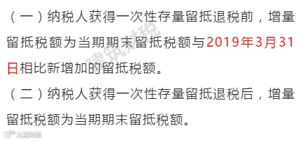 (一)纳税人获得一次性存量留抵退税前,增量留抵税额为当期期末留抵税额与2019年3月31日相比新增加的留抵税额。