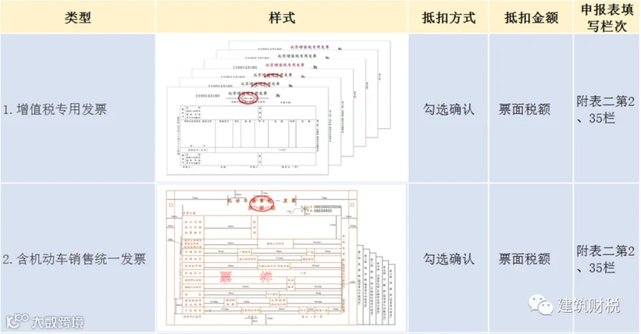 增值税专用发票、机动车销售统一发票、收费公路通行费增值税电子普通发票、仅注明一个缴款单位信息的海关进口增值税专用缴款书(以下简称增值税发票)。