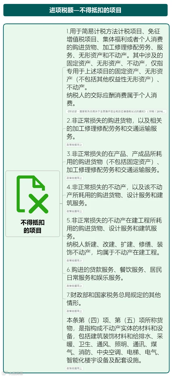 不能抵扣进项税的所有情形下图全部涵盖了,一起学习一下吧~