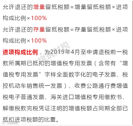允许退还的存量留抵税额=存量留抵税额×进项构成比例×100%