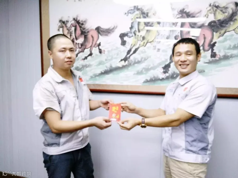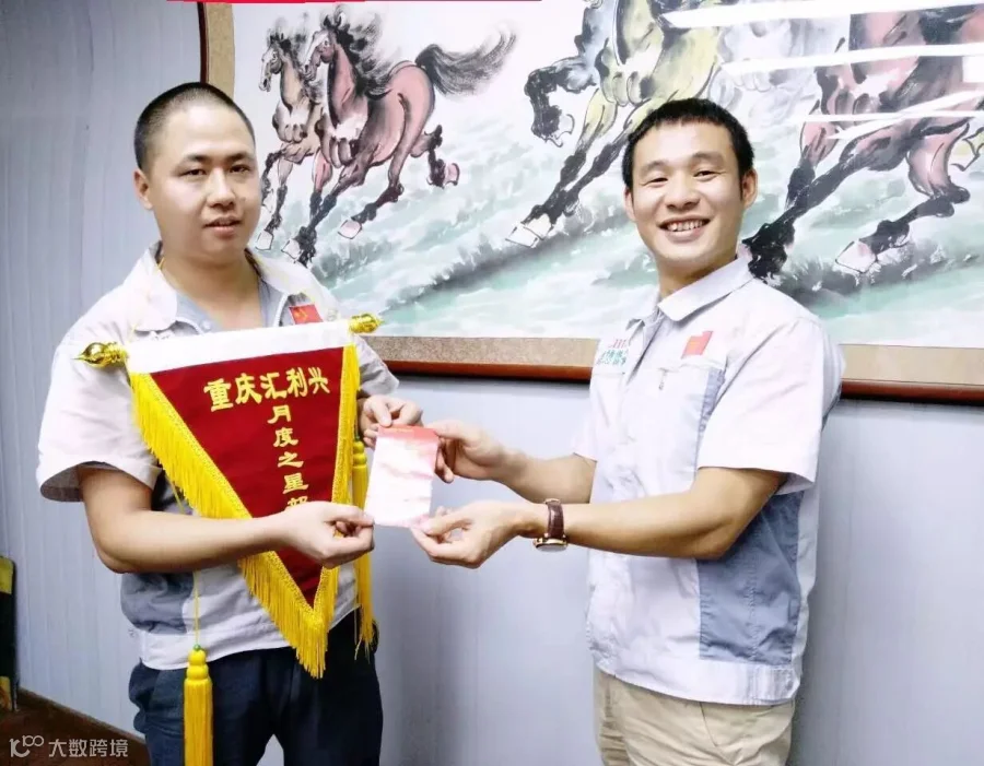 月度之星徐财华与胡总经理同框合影