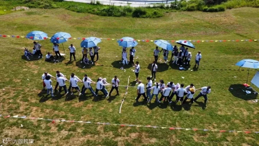 拔河游戏,每两队进行比拼,一个个英姿飒飒、昂首挺胸,使劲浑身解数紧握绳子,他们一个个脚蹬着地,身体向后倾,拼命向着自己的方向拽绳子,但丝毫不影响另一队员的发力,在队长一声口令下,一鼓作气瞬间取得胜利。这一幕场景着实展现了“心往一处想,劲儿往一处使”的力量感“和“一切行动听指挥,最终才能取得胜利”的领导决策。
