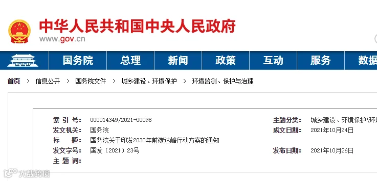 2、国务院关于印发2030年前碳达峰行动方案的通知