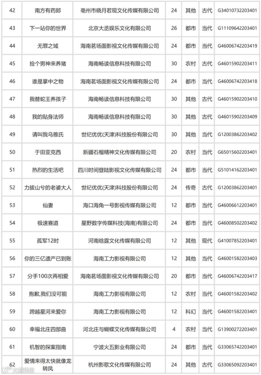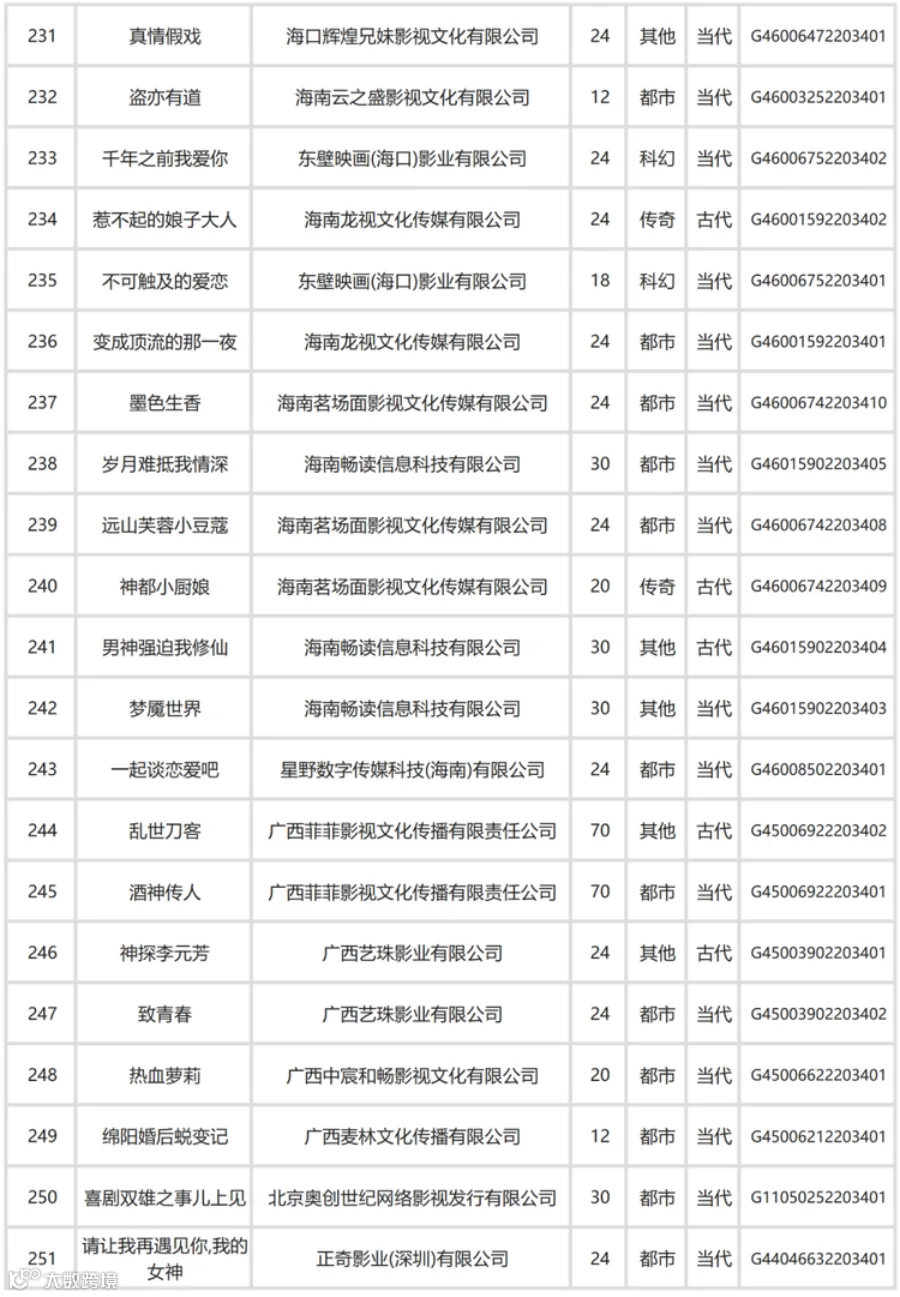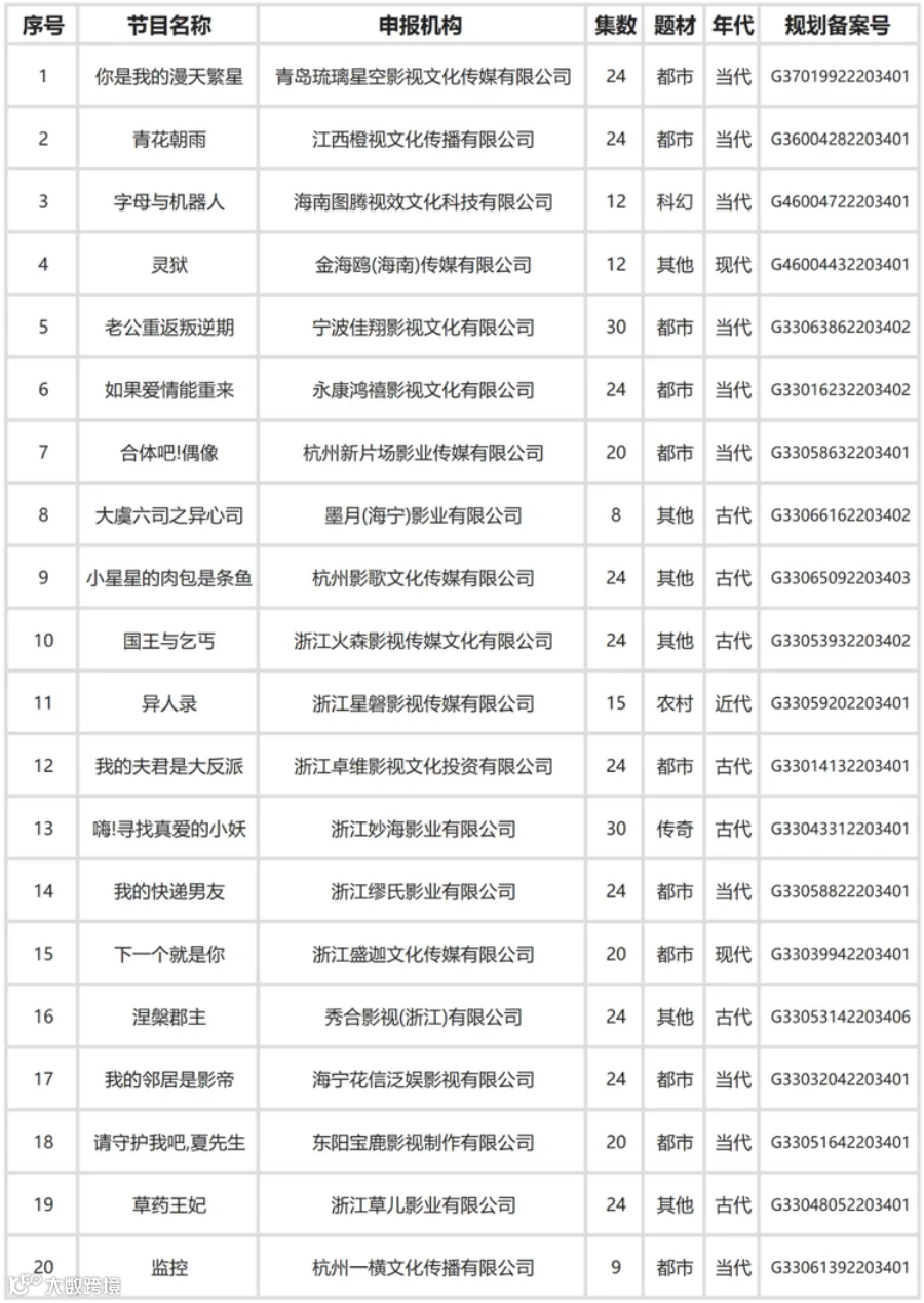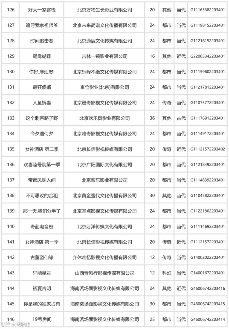 注:备案信息来自广电总局重点网络影视剧信息备案系统,具体以