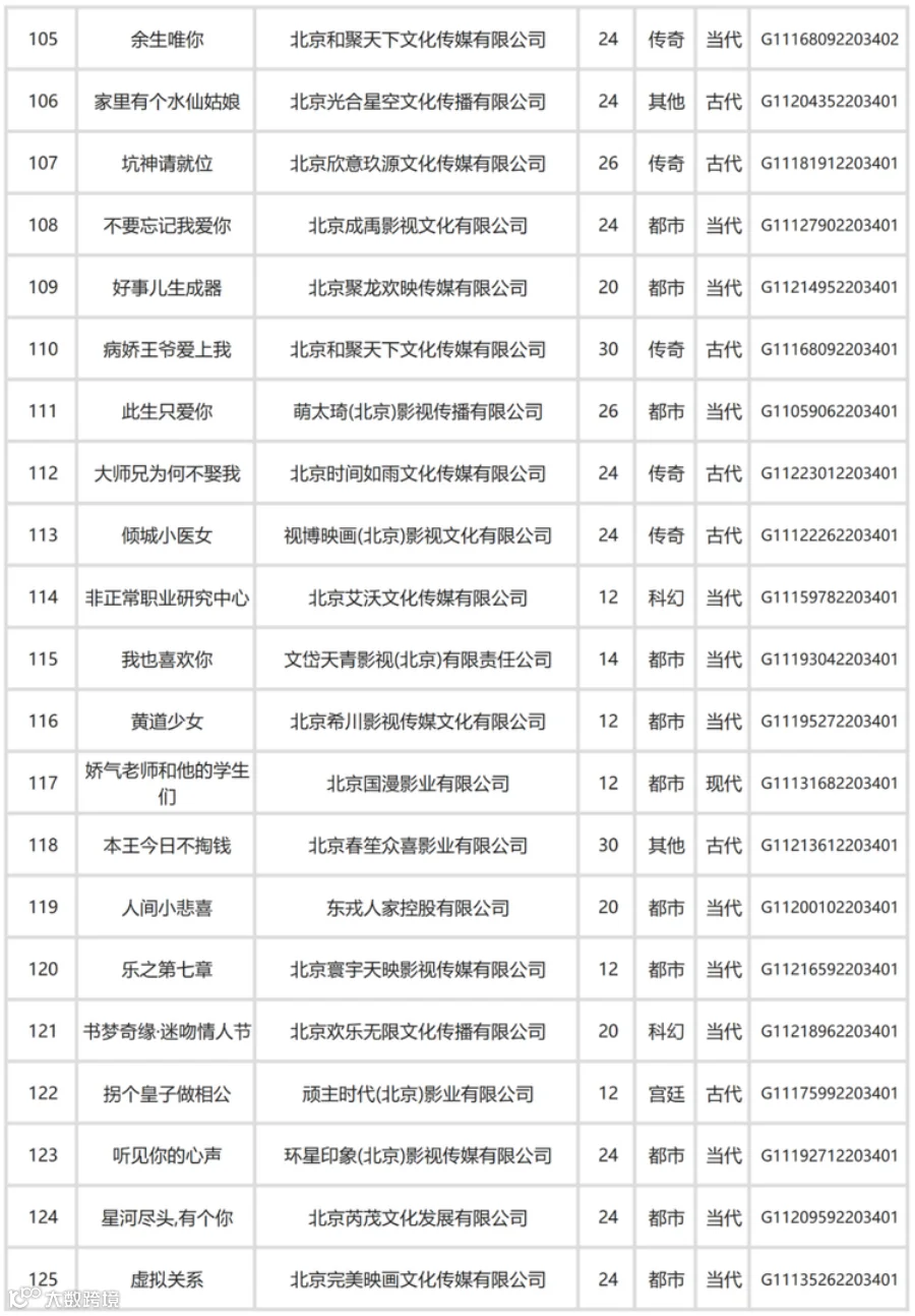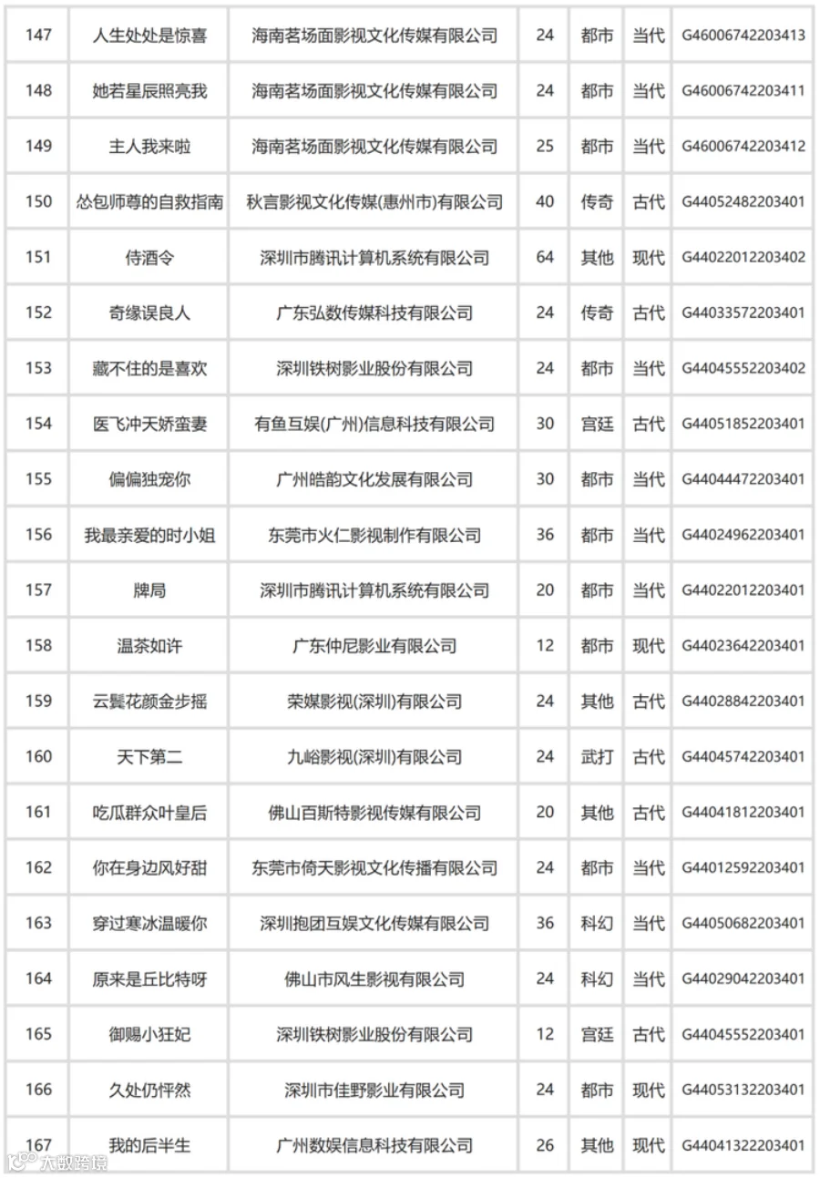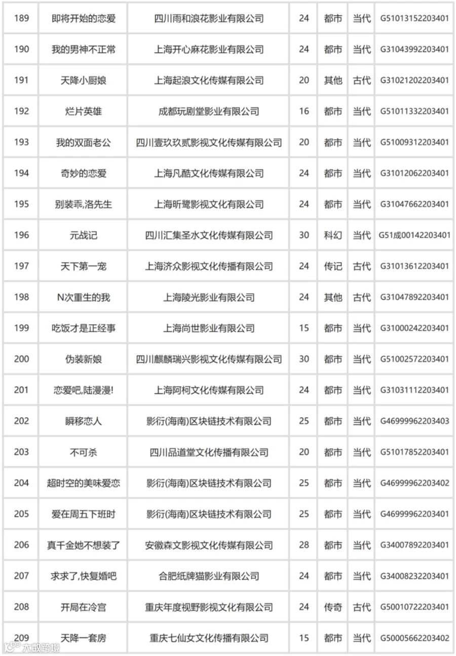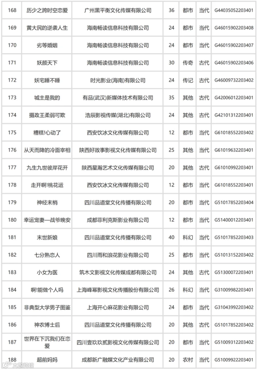 注:备案信息来自广电总局重点网络影视剧信息备案系统,具体以