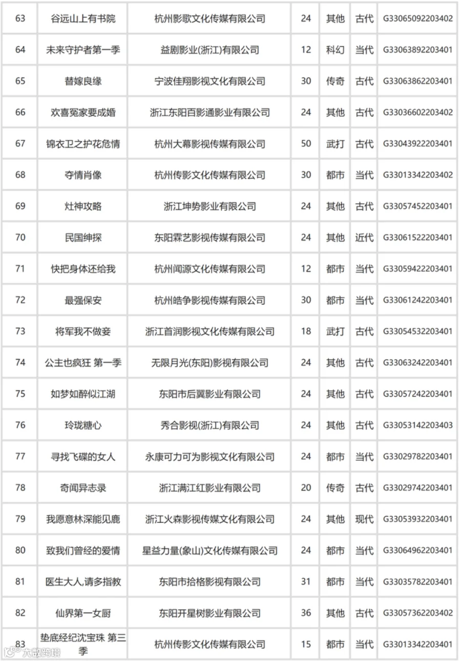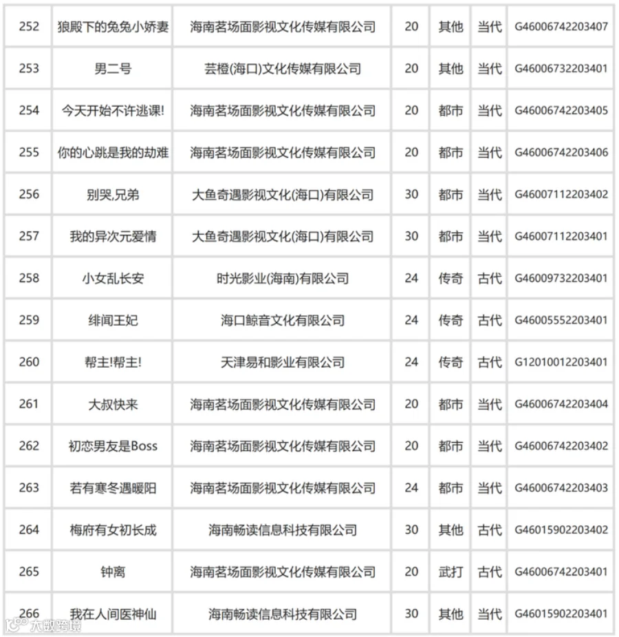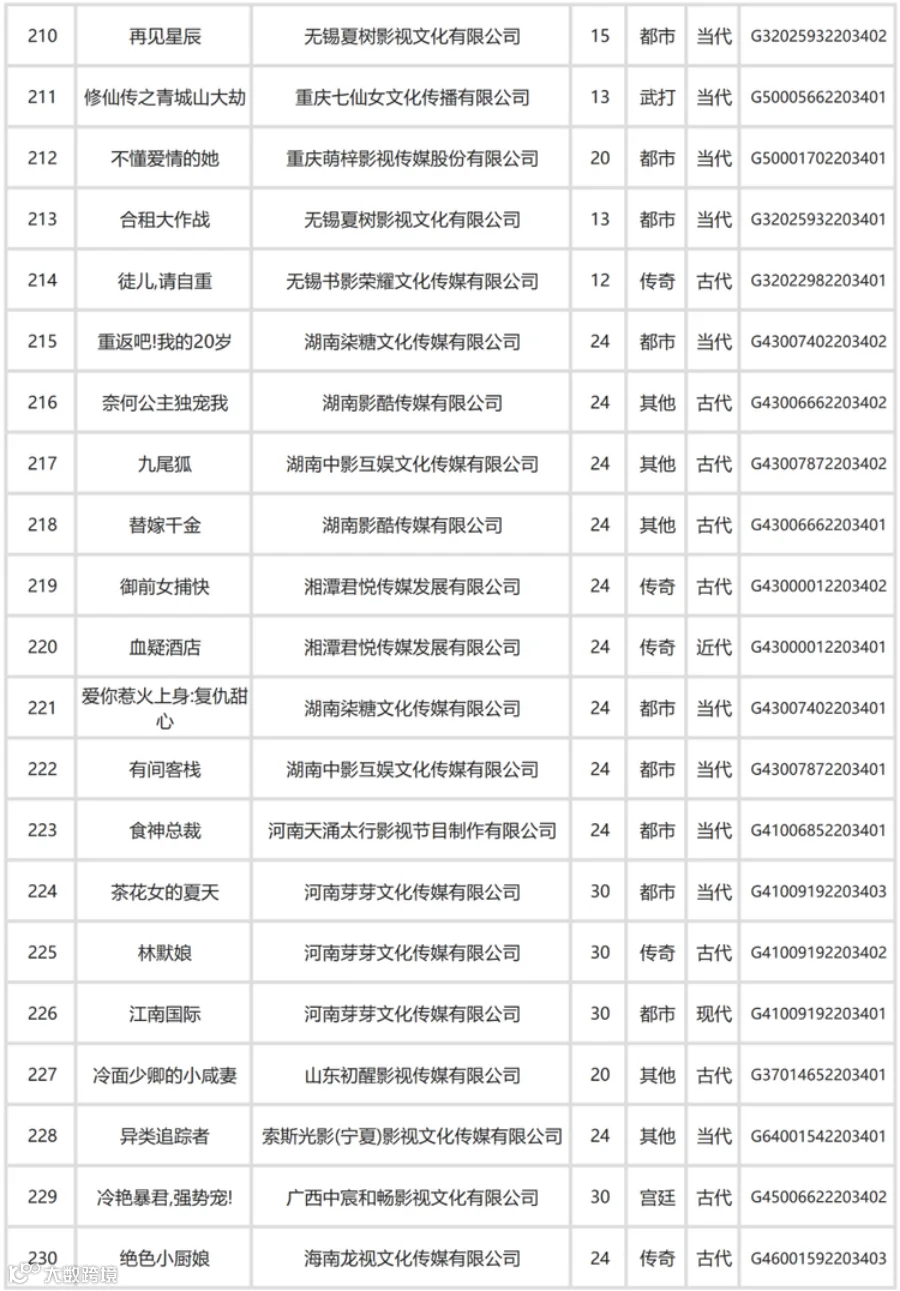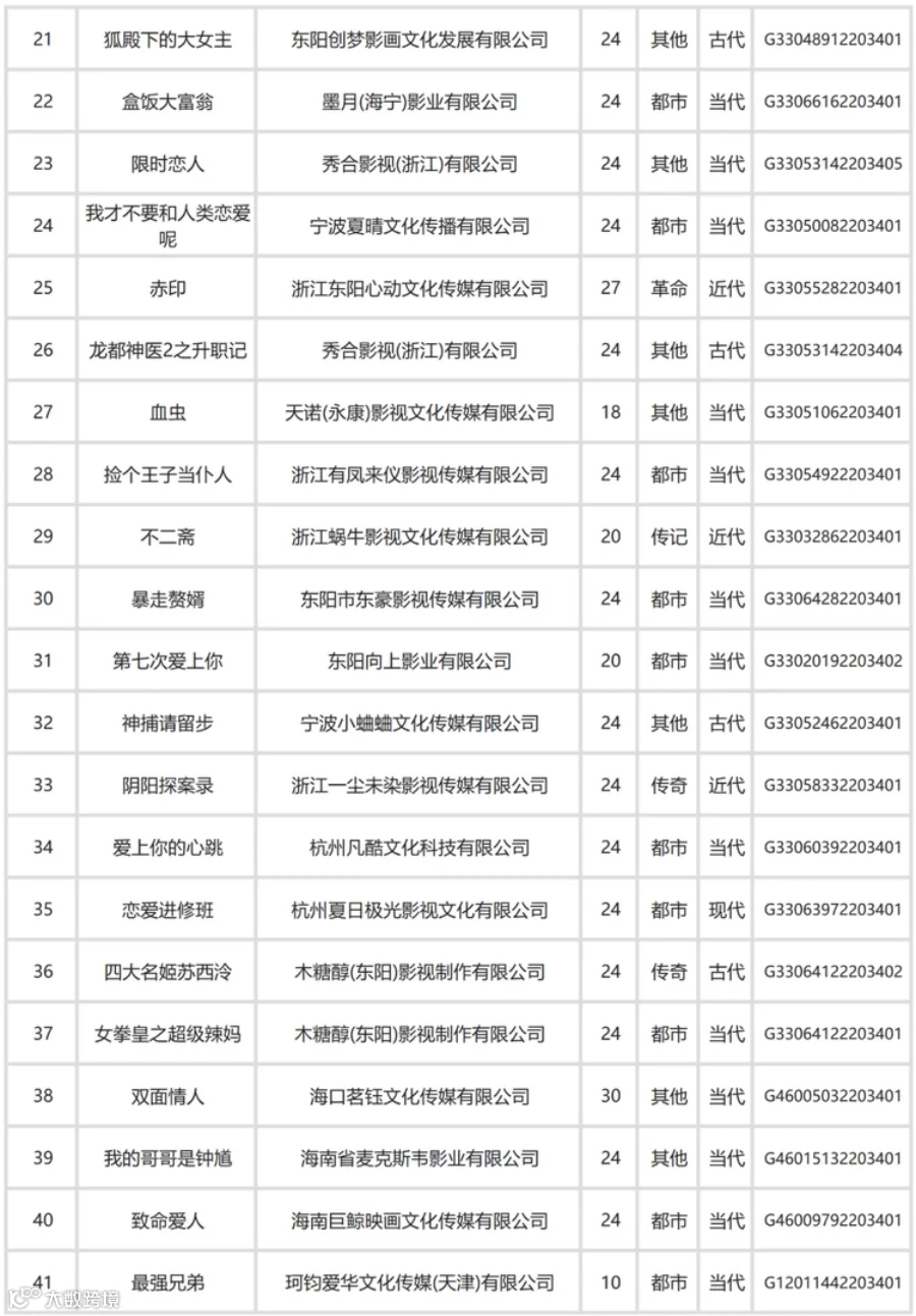 注:备案信息来自广电总局重点网络影视剧信息备案系统,具体以