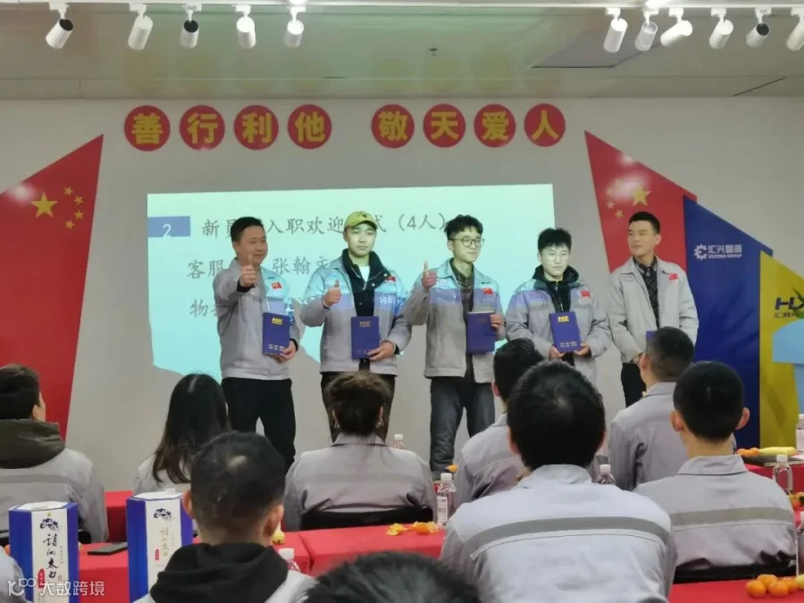 会议第二项,新员工入职欢迎仪式。培育新生力量,助力企业发展,增强企业核心竞争力,强化人才建设梯队。由公司副总徐财华亲自为新入员工颁发纪念品。