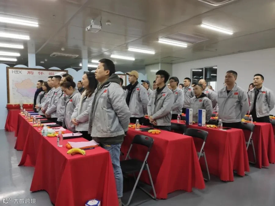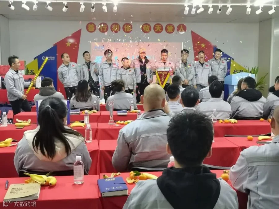 会议前,唱国歌-升国旗。随后由三位精英击响士气鼓,鼓舞士气,鼓舞着战友们奋勇前进,并以这种积极进取、你追我赶的“激励文化”,潜移默化鞭策着员工们不断争先创优,砥砺前行。现场鼓声震天,士气如虹。