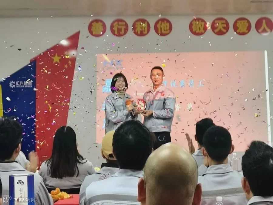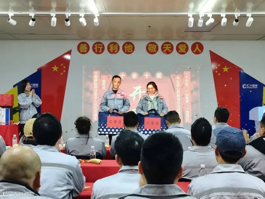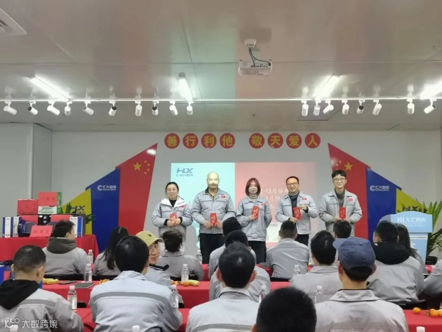 会议第三项,为12月份/1月份寿星送祝福。在忙碌的生活和工作中,我们常常会忘记自己的生日,然而,公司却从未忘记每一位家人的生日。祝你生日快乐”这句祝福深深印在每一位汇利兴人的心中,汇利兴的家人们也早已把公司当成了第二个家。年会现场,寿星们纷纷上台,大家共同为寿星们送上生日祝福!