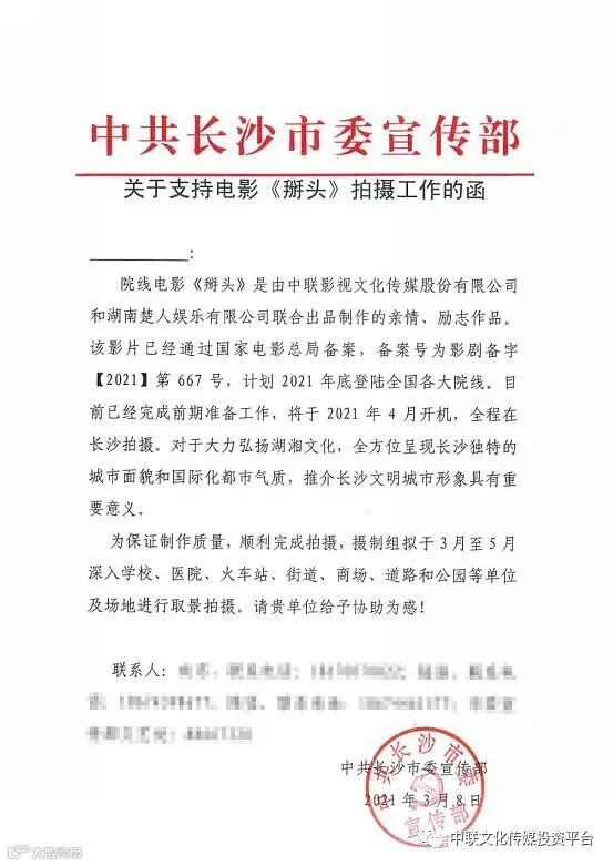 2021年4月18日,由中联影视文化传媒股份有限公司、广州市中联文化传媒投资有限公司、一幕了然(广州)影视传媒有限公司联合拍摄,街舞女孩席嘉琪真实经历改编,并由她亲身出演的中国首部街舞院线电影《掰头》在长沙正式开机!