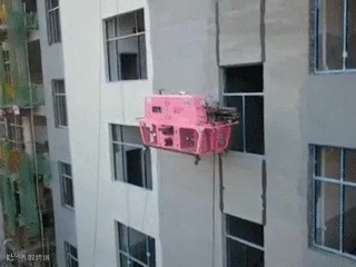 传统的高楼外墙粉刷喷涂中,需由工人站在悬挂在高空的吊篮里手动喷涂或辊涂实现,遇到大风天则停止作业,但偶尔的起风也会使吊篮来回摇晃,非常危险。