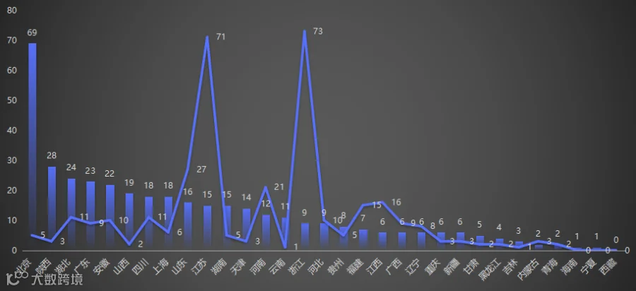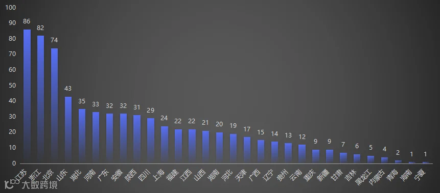 按注册地统计,江苏、浙江、北京、山东、湖北分别以86家、82家、74家、43家、35家位列特级资质企业前五。西藏是全国唯一没有特级资质企业的省份,宁夏、海南分别有1家特级资质。