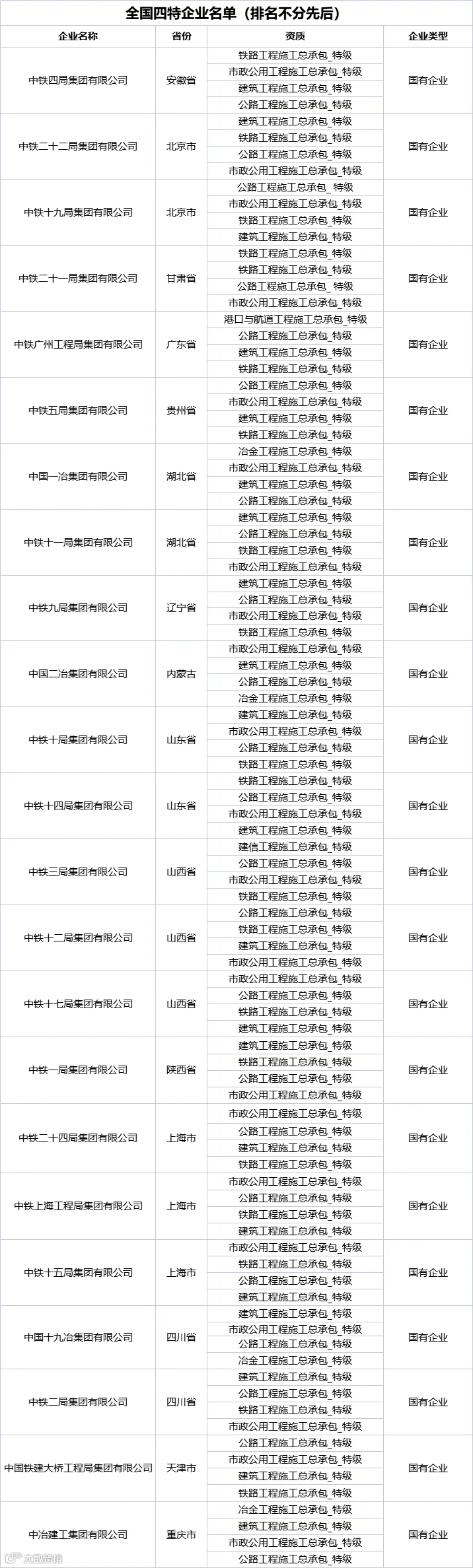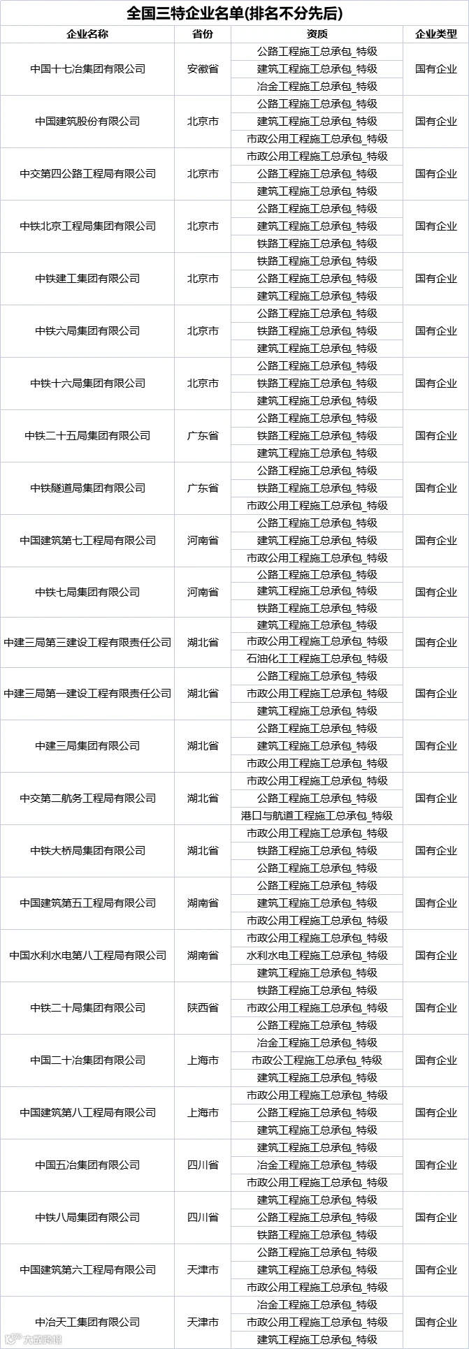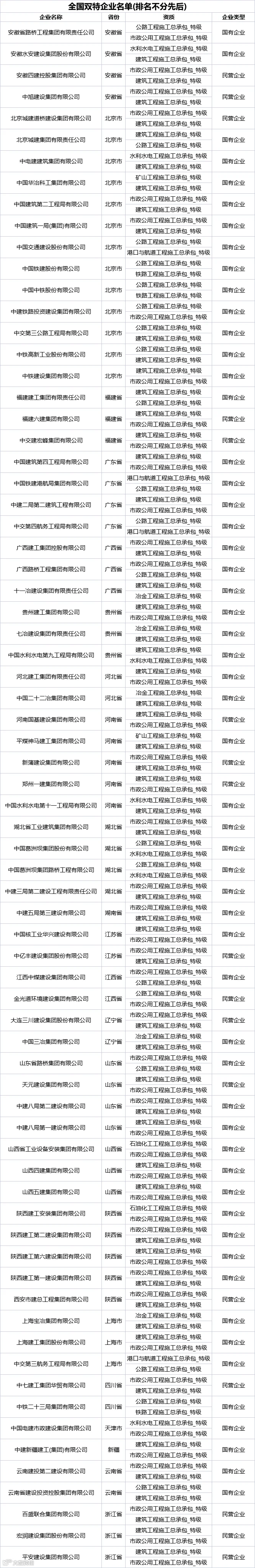 截至目前,全国共720家企业拥有特级资质,其中国有企业有385家,民营企业有335家。