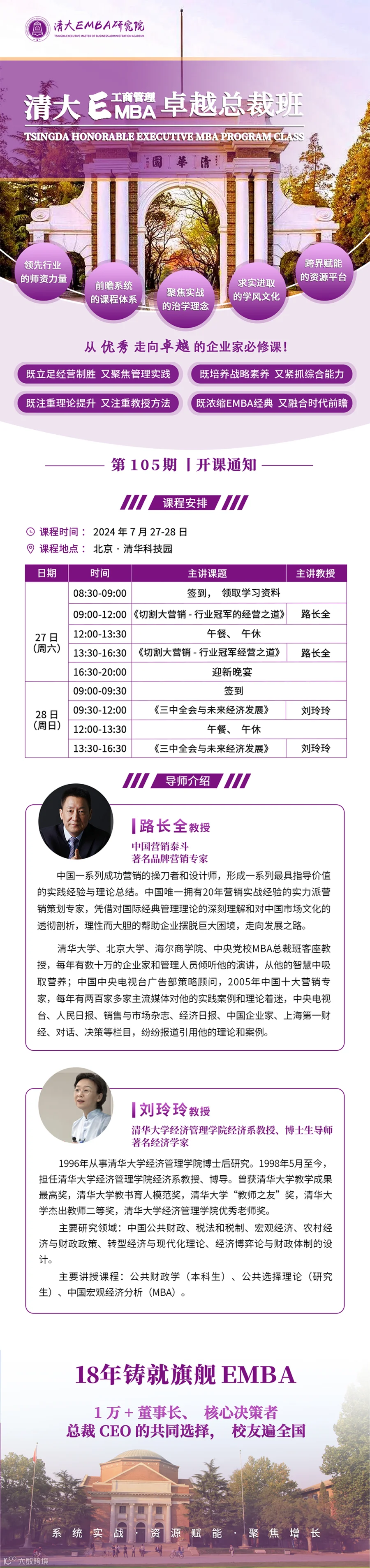 欢迎加入:清大·工商管理(EMBA)总裁高级研修班