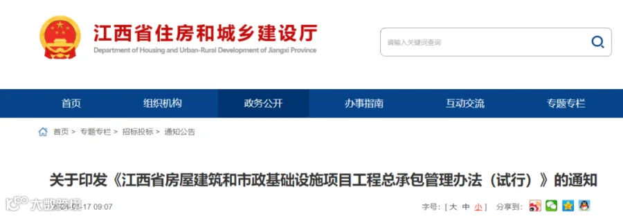 2月,江西省住建厅发布关于印发《江西省房屋建筑和市政基础设施项目工程总承包管理办法(试行)》的通知,本办法自2024年3月1日起施行。其中: