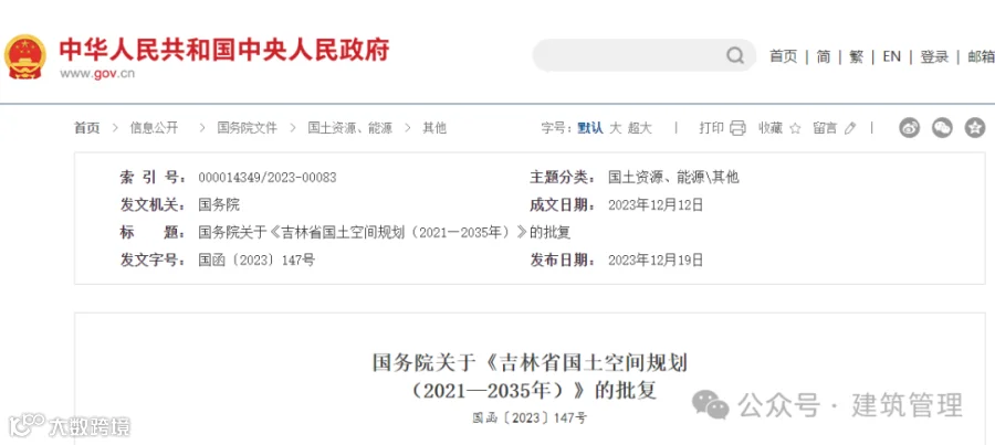 《吉林省国土空间规划(2021—2035年)》已于2023年12月19日经国务院批复同意。