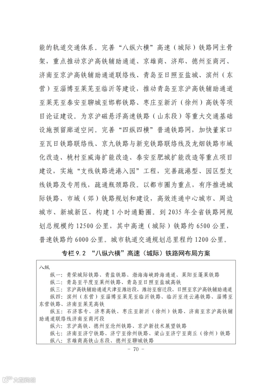 纵一:青荣城际铁路、青盐铁路、渤海海峡跨海通道、莱阳至蓬莱铁路