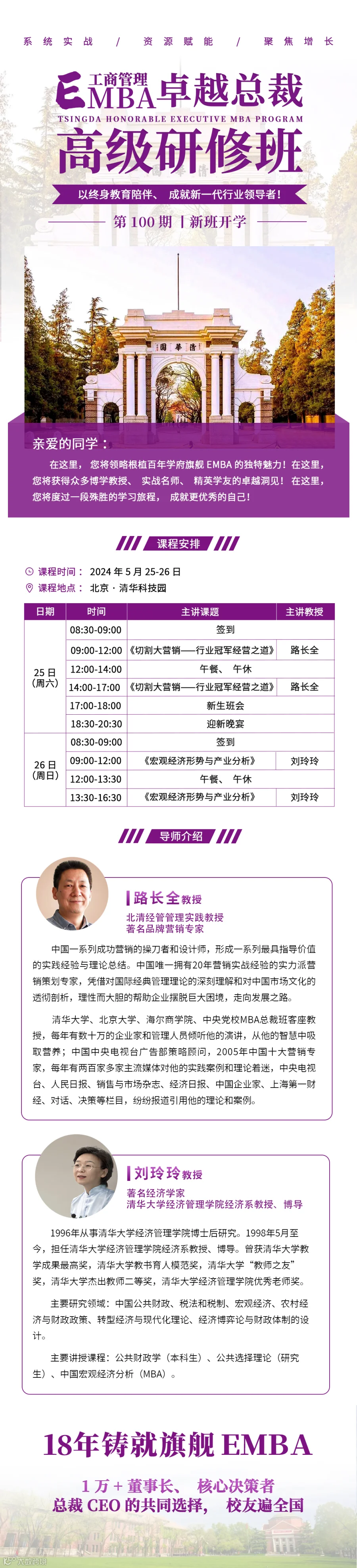 欢迎加入:清大·工商管理(EMBA)总裁高级研修班
