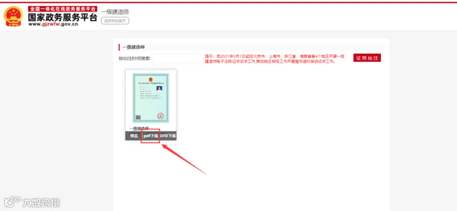 请前往“住房和城乡建设部政务服务门户”查看或下载电子证照。