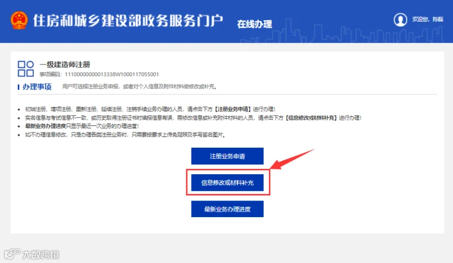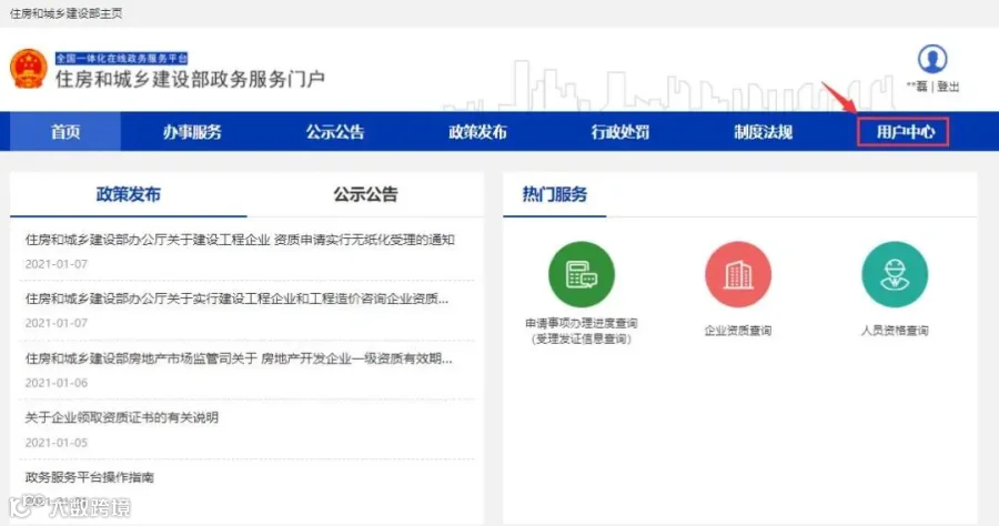 1.1 用户通过“住房和城乡建设部政务服务门户”加注/查看电子证照。