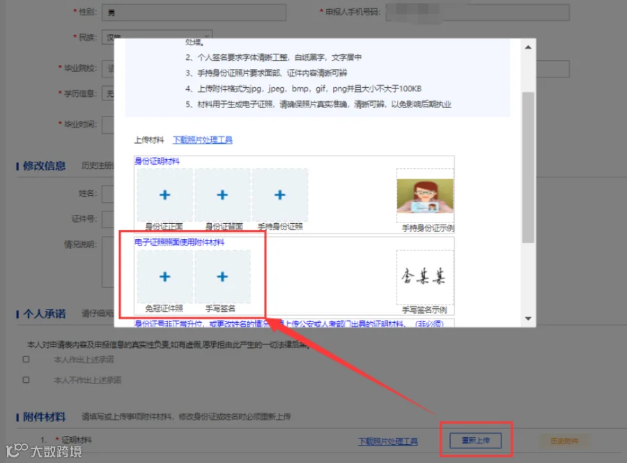 3.4 手写签字和免冠证件照补充及修改