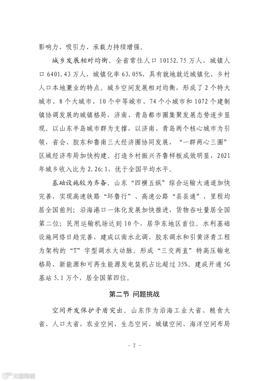 1月8日,山东省人民政府正式发布关于印发《山东省国土空间规划(2021—2035年)》的通知。