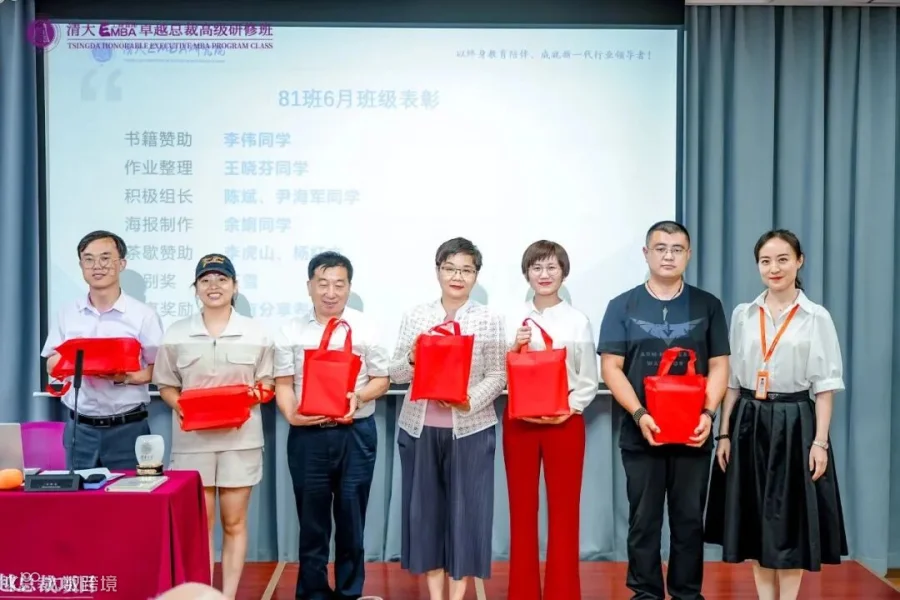 除了上课外,每次第一天课程结束后还会开班会。这次班会上班主任易品老师总结了之前两个月的班级活动:班主任家访、企业参访、同学小聚游玩、善战者说等,对积极参加班级活动并且对班级有贡献的同学进行了表彰。