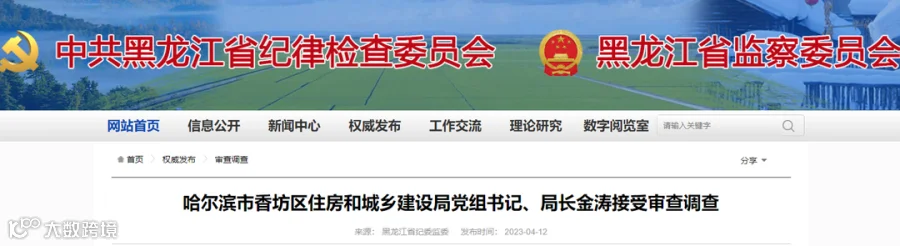 哈尔滨市香坊区住房和城乡建设局党组书记、局长金涛涉嫌严重违纪违法,目前正接受纪律审查和监察调查。