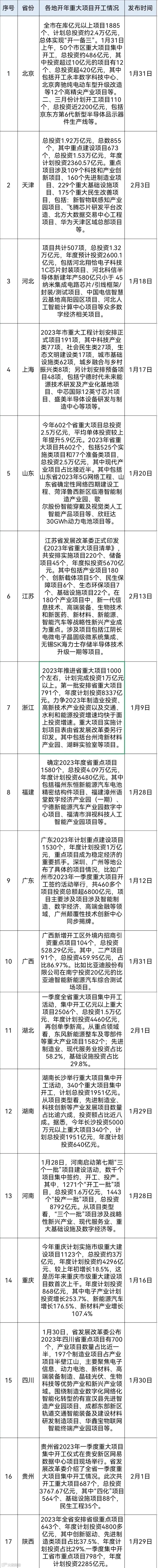 开工第一天,1月28日,广东省21个市的书记立下军令状,广州、深圳随即公布了6800亿元、3295亿元新开工或签约的项目,新一代电子信息、智能家电等产业项目扎堆;河南省数千个项目集中签约、开工、投产,其中1271个“开工一批”项目,总投资1.6万亿元;陕西省5646亿元、795个项目集中开工,同比增长26.3%……