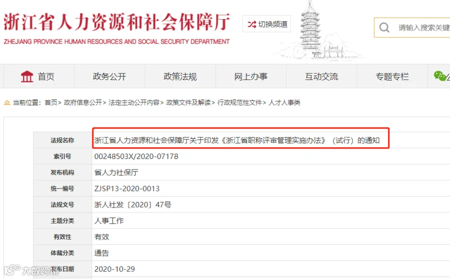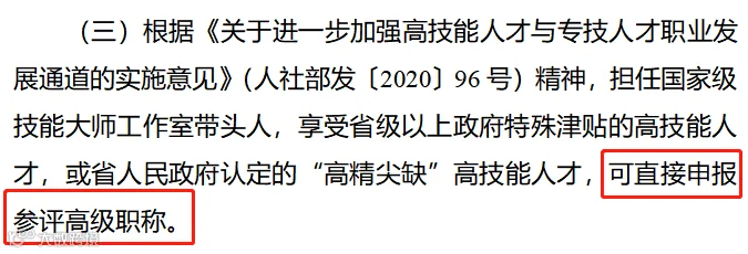 2020年10月,浙江省人社厅印发《浙江省职称评审管理实施办法》(试行),明确了职称评审“直通车”机制: