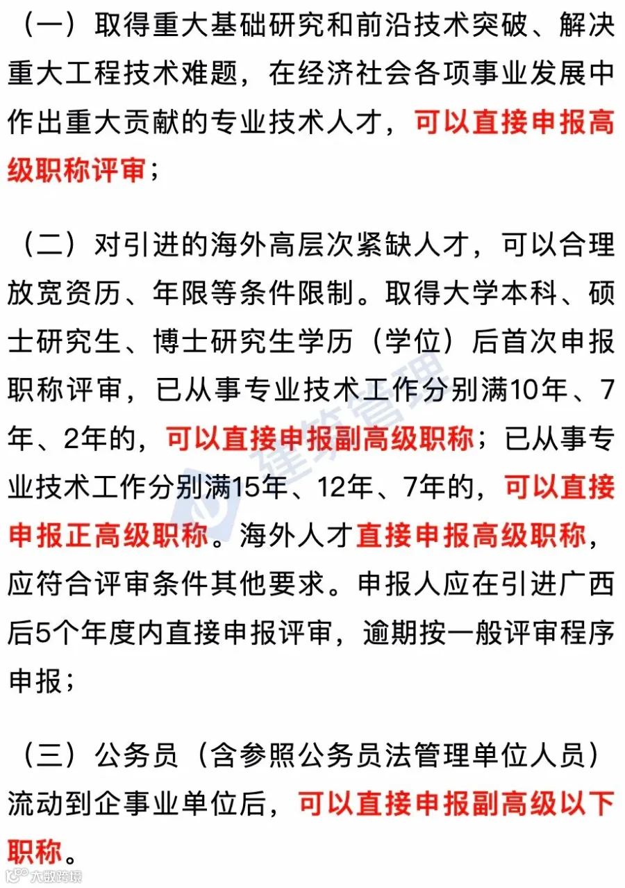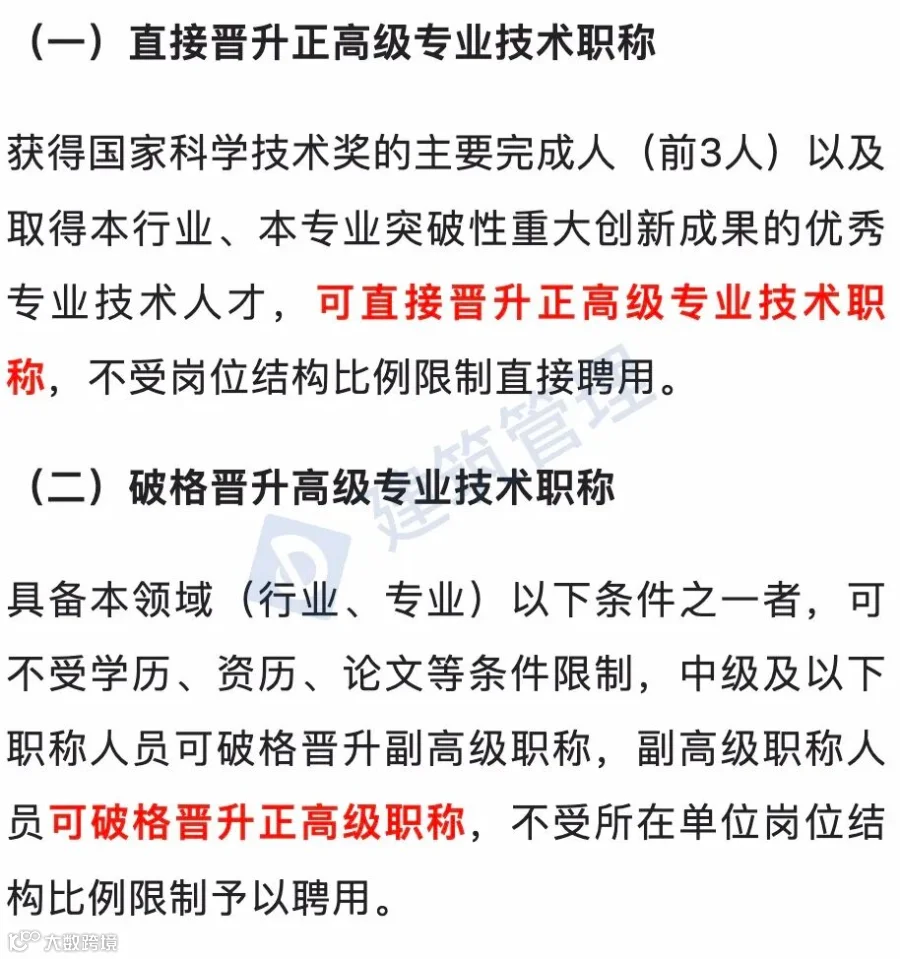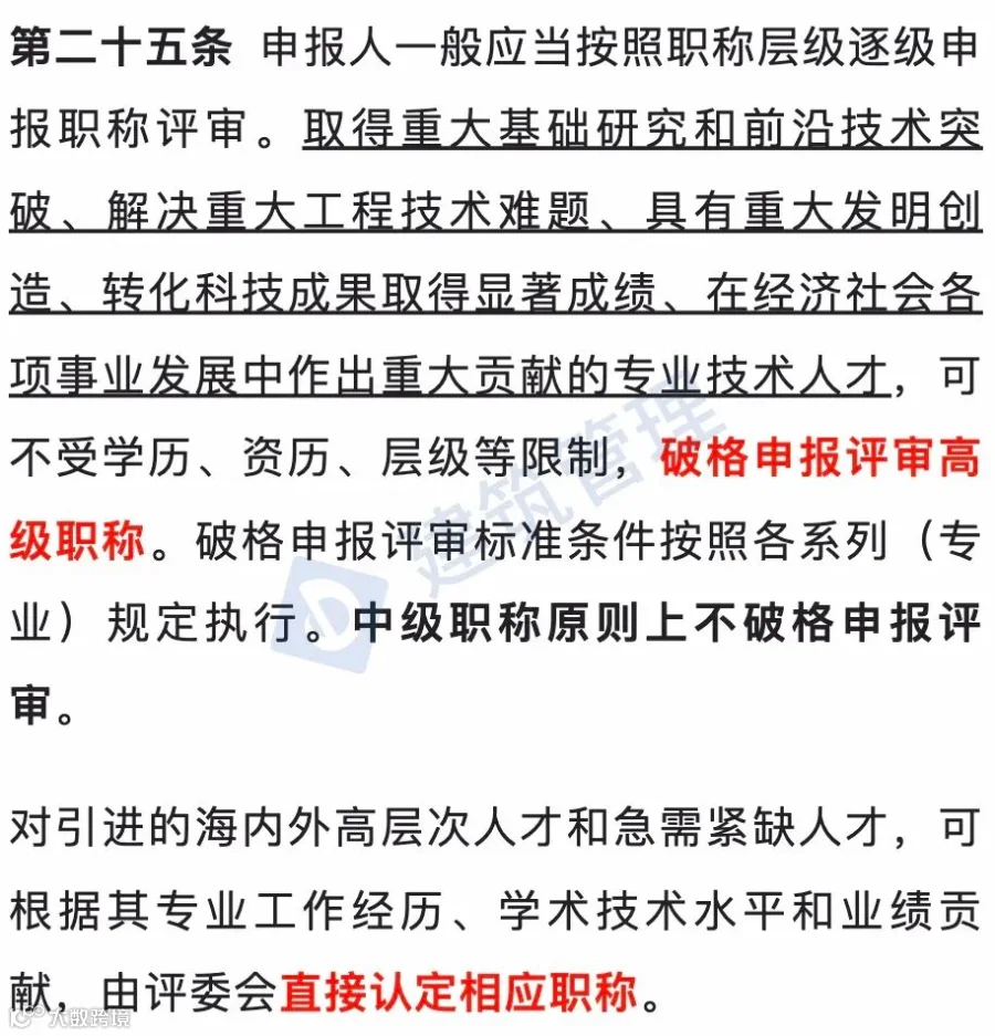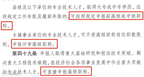 值得注意的是部分人员可破格申报高级职称:
