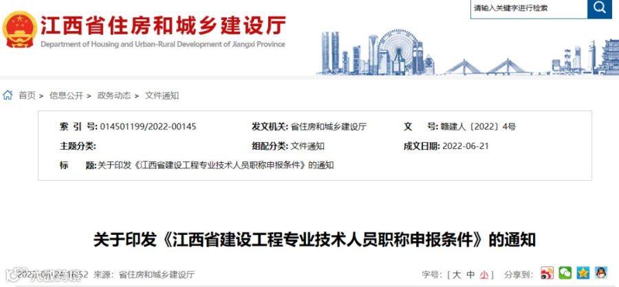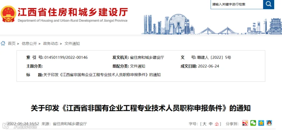 近日,江西省住建厅印发《江西省建设工程专业技术人员职称申报条件》和《江西省非国有企业工程专业技术人员职称申报条件》,2份文件自发布之日起实行。