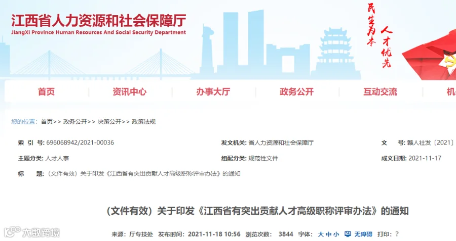 江苏省人社厅印发《江苏省高技能人才与专业技术人才职业发展贯通改革实施方案》,本通知自印发之日起施行。
