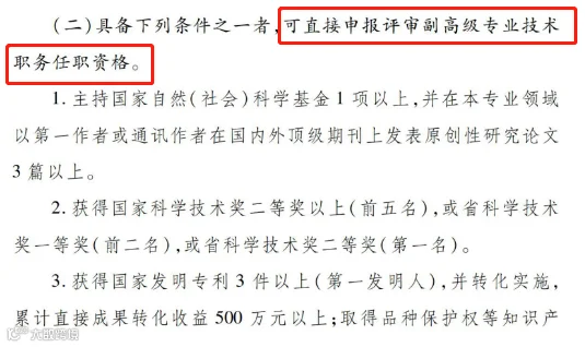 建立绿色通道,这类人员可直接申报评审副高级职称或正高级职称。