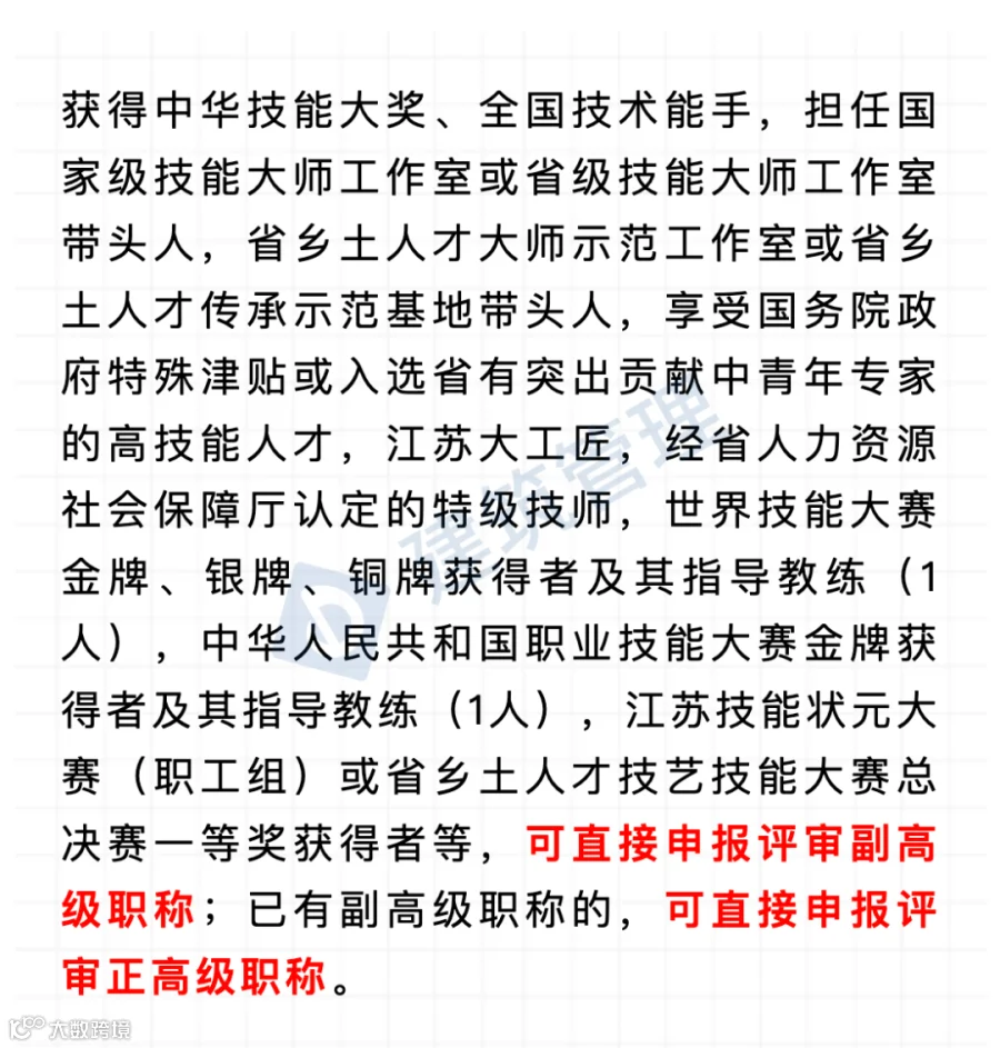 其中:世界技能大赛金牌获得者、中华技能大奖获得者、享受国务院政府特殊津贴人员的高技能人才,可直接申报正高级工程师。