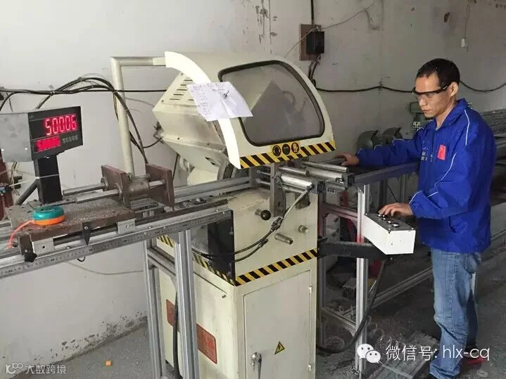 业务员说:“我们现在用的是智能切割机,不仅速度快,而且切割尺寸也非常精确,切割面光滑,您的铝型材十来分钟就可以上车了!”
