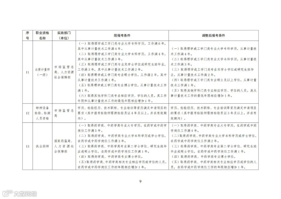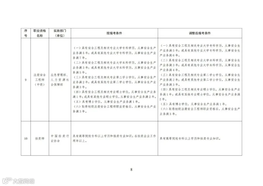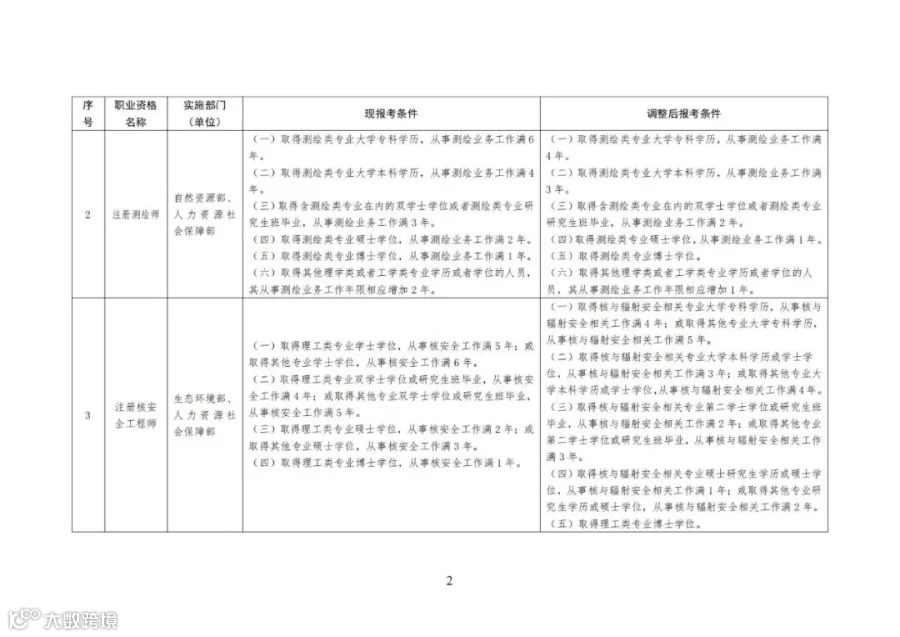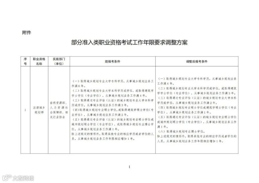 附件:部分准入类职业资格考试工作年限要求调整方案