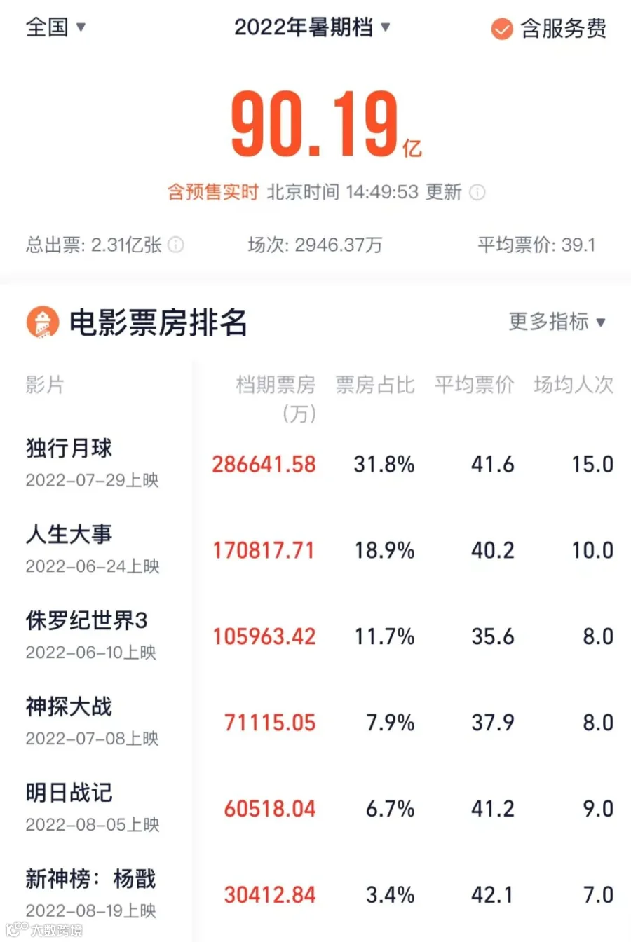 影响票房的因素很多,其中最主要的还是内容。数据显示,今年暑期档,《独行月球》《人生大事》两部影片在淘票票平台的评分都在9.4分以上,两部高口碑影片合计贡献了暑期档一半以上的票房,头部引领效应明显。