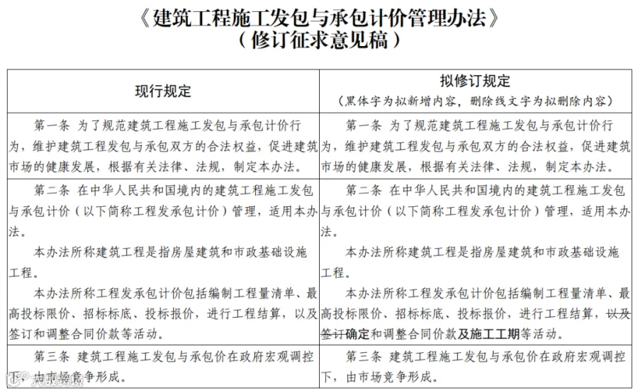 1.《建筑工程施工发包与承包计价管理办法》(修订征求意见稿)