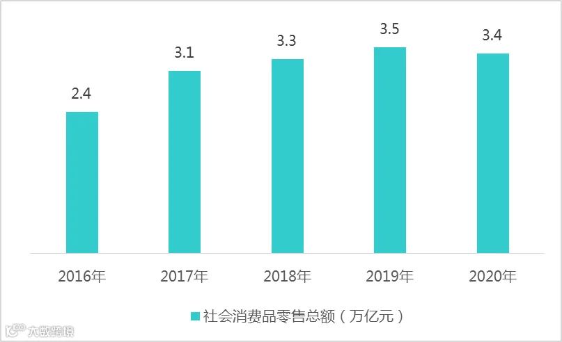 2016-2020年百强县社会消费品零售总额变化
