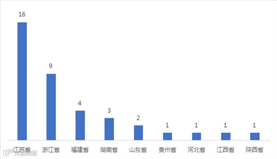 从“千亿县”省份分布看,共分布于全国9个省份。分别是江苏省16个、浙江省9个、福建省4个、湖南省3个、山东省2个、陕西省1个、河北省1个、贵州省1个、江西省1个。