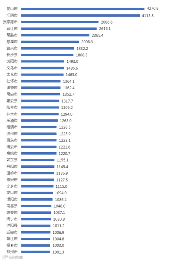 “千亿县”增至38个,县市GDP突破千亿将更加常态化