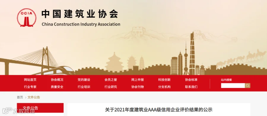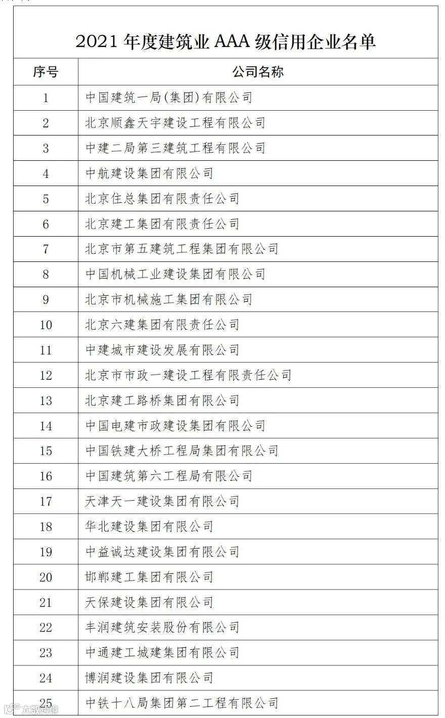 关于2021年度建筑业AAA级信用企业评价结果的公示