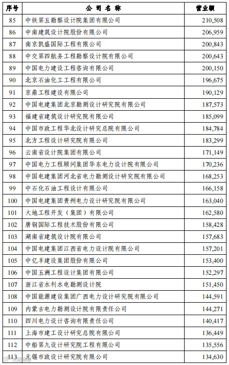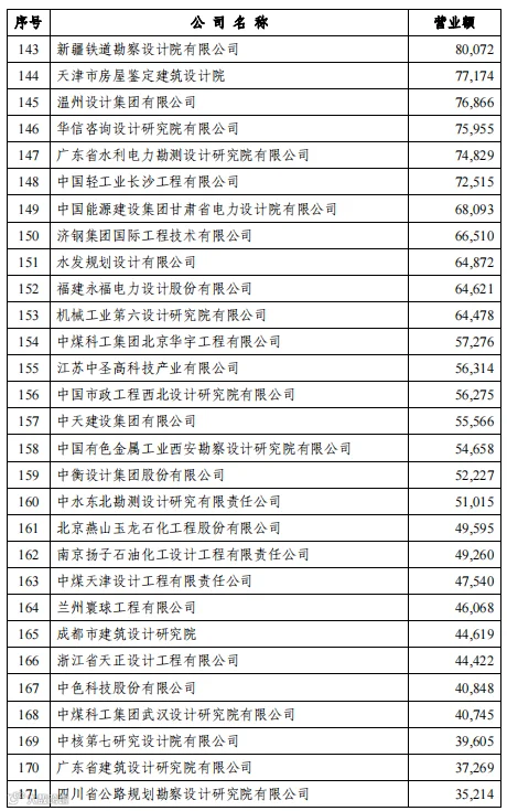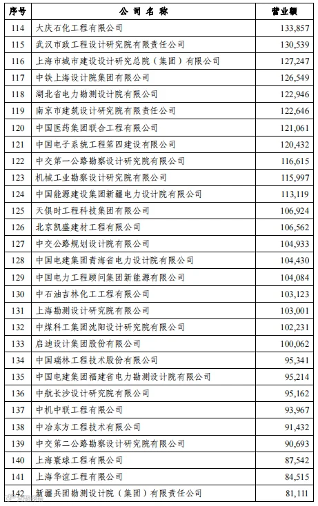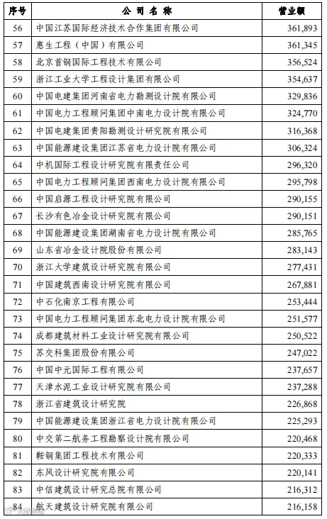 中铁第四勘察设计院集团有限公司、中冶南方工程技术有限公司进入了前十。